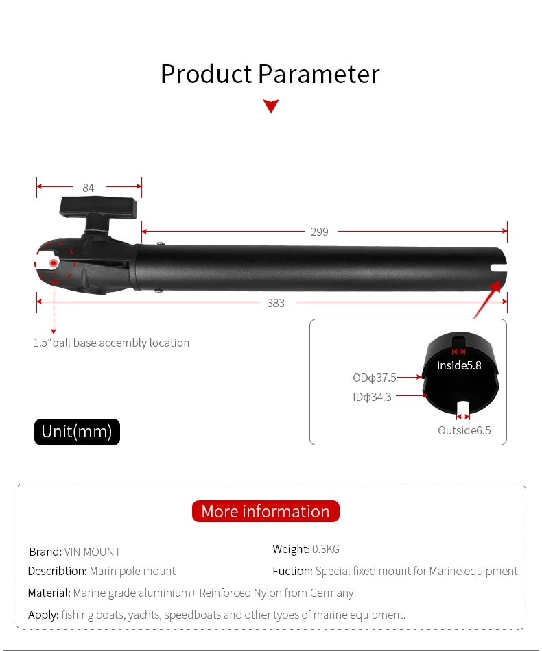 VIN mounts 11.8" Aluminium Tough-Pole Camera Mount for Fishfinder Navigation Boat Mount for Global Positioning System VIN-C-LVA