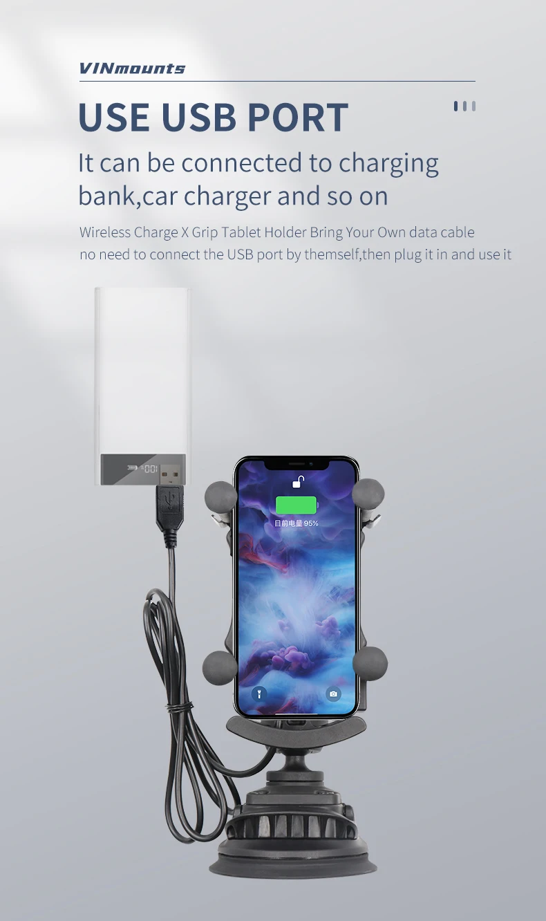 VIN Mounts 15W Fast Charging Auto Clamping Wireless Car Charger Phone Holder mount For All Phones