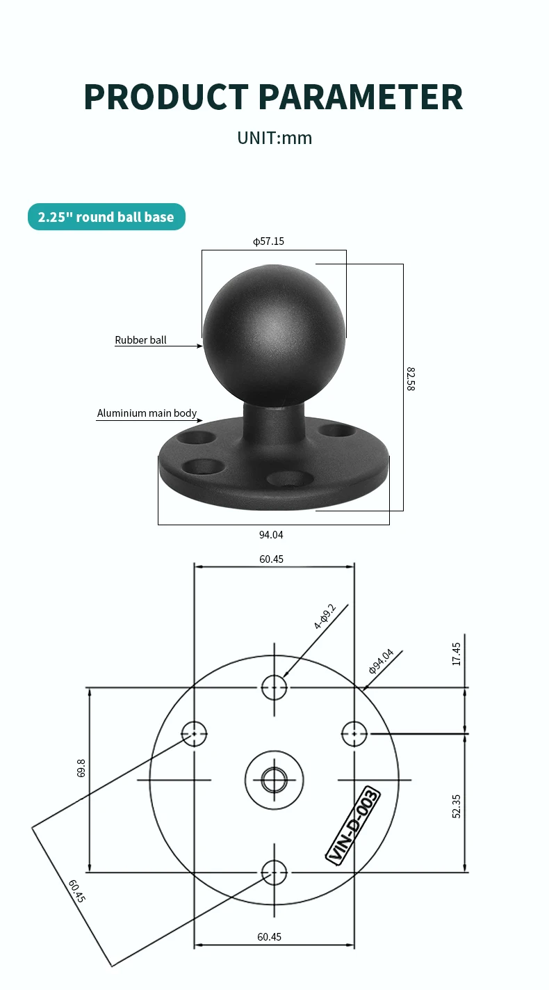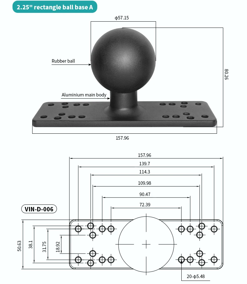 VIN mounts 6.25" x 2" Marine Electronics Base Plate with 2.25" Ball for Fishfinders GPS Chartplotters Humminbird & Raymarine VIN-D-006