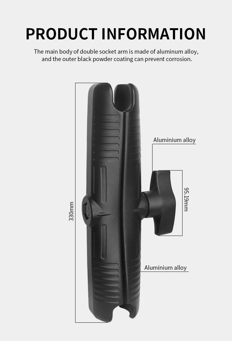 The total length of the double socket arm is 33cm, Material: aluminum alloy, which is suitable for