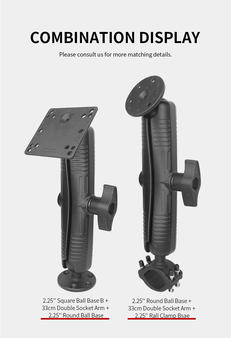 VIN mounts Heavy Duty Marine-grade aluminum 12.99" /33cm Long Double Socket Arm with Jam Nut - D Size Long for Forklift/Tractor 2.25" Large Mounts & Stands VIN-D-33