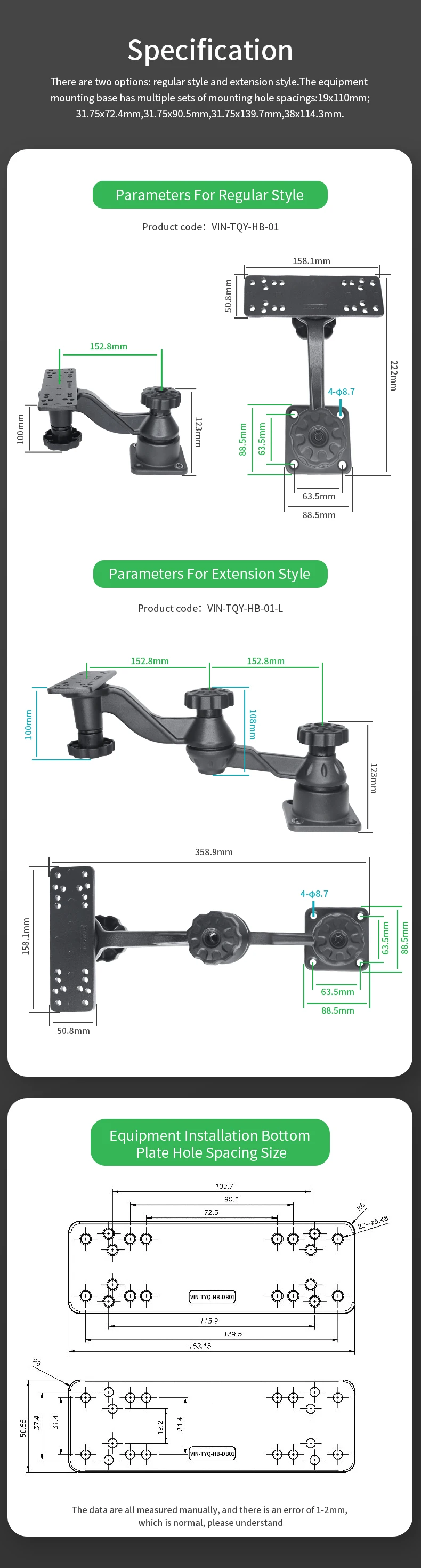 VIN mounts Horizontal 6" Swing Arm Mount for Fishfinders & Chartplotters Compatible with Garmin, Humminbird, Lowrance VIN-TYQ-HB01