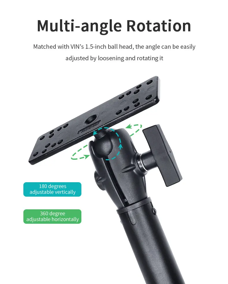 VINmounts 18.31" Aluminum Extension Pipe with Two 1.5" Ball Socket Arms for Fish Finder Bracket Kayak Mounts for ram mounts VIN-C-300