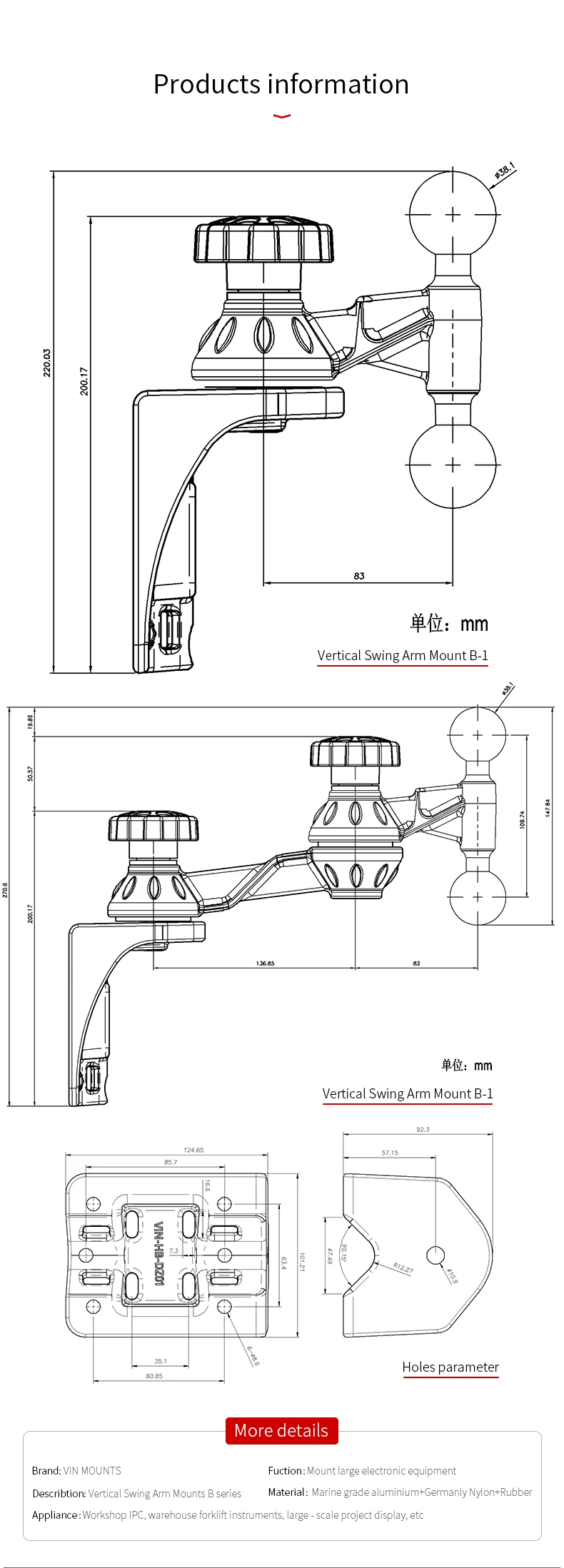 VIN mouts Universal Vertical Double 3.27" Swing Arms With Double 1.5'' Ball & Vertical Mounting Base VIN-HB-DBSQ