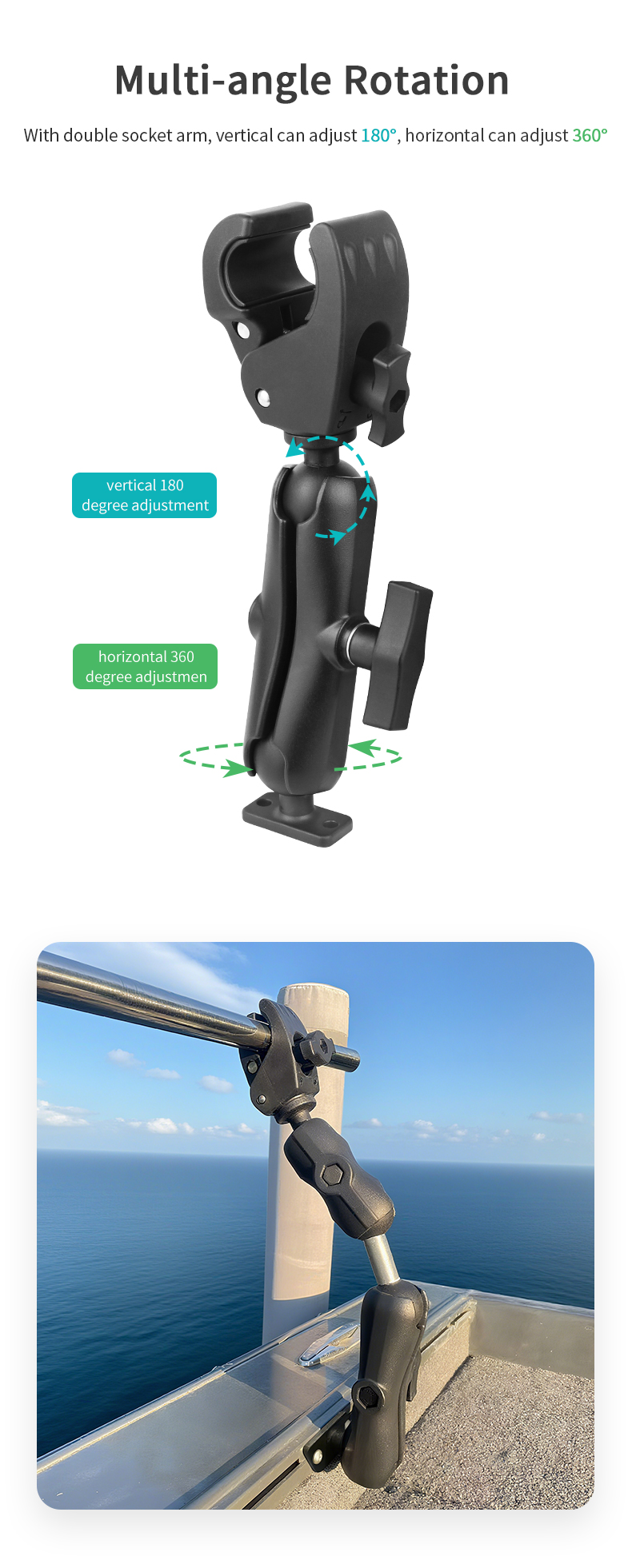 Made from durable materials with a high-friction rubber ball, the mount ensures vibration resistance and reliable support for driving recorders, dash cameras, GPS devices, vehicle monitors, and other electronic equipment. The 2-hole base allows easy installation on flat surfaces, making it suitable for cars, trucks, boats, and heavy-duty machinery.