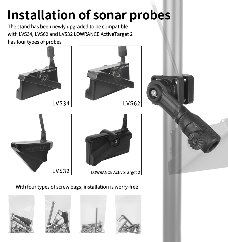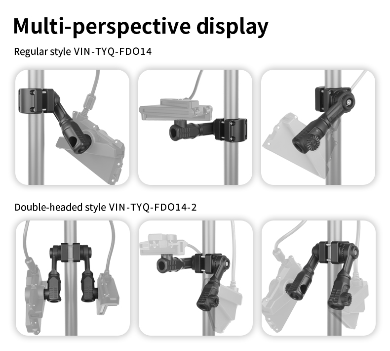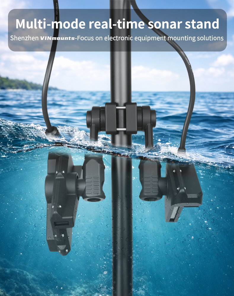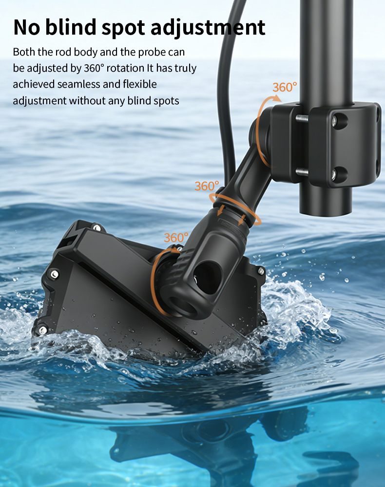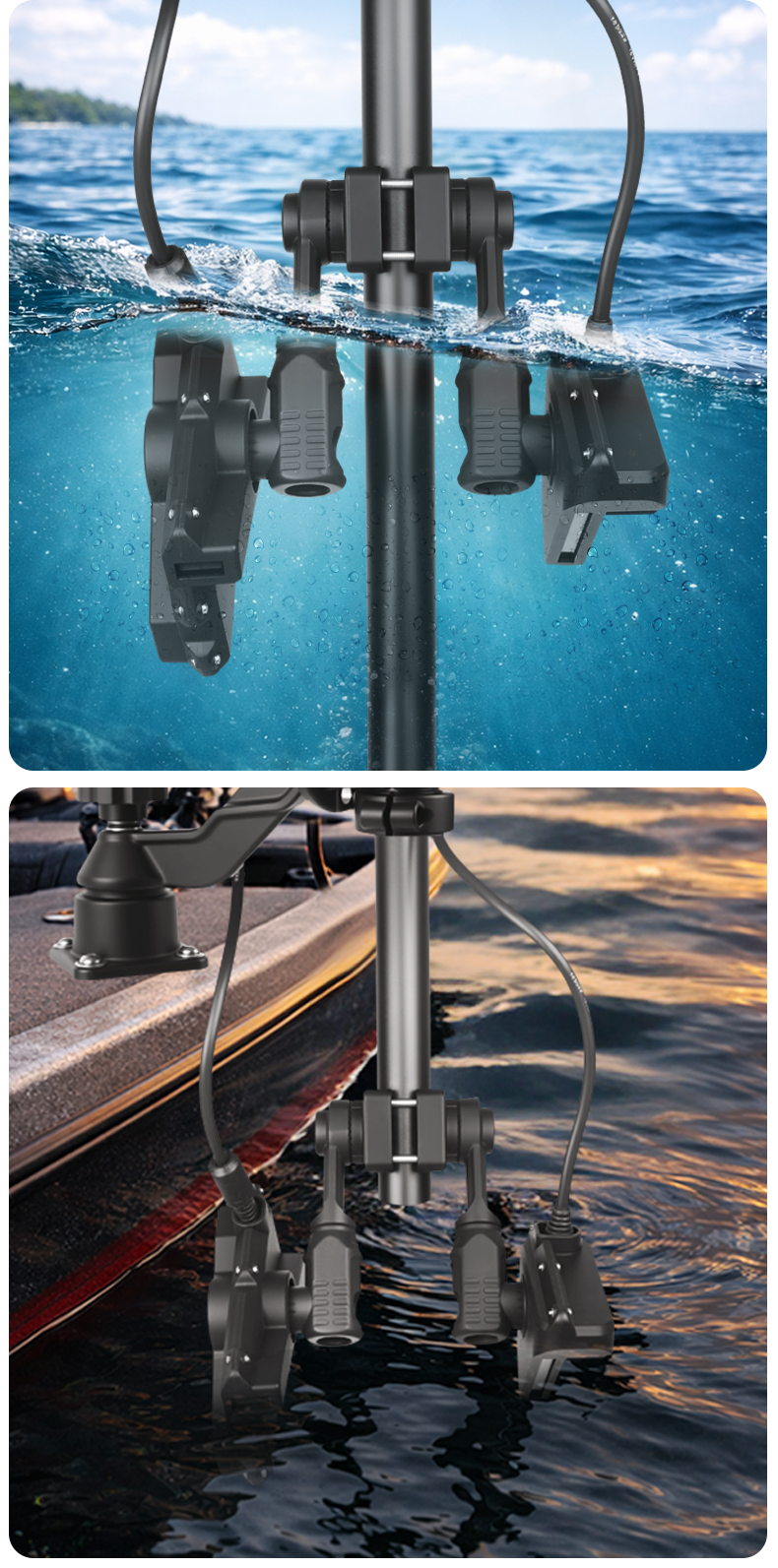 Engineered for flexibility, the mount features a fully adjustable multi-angle structure, allowing you to easily fine-tune your sonar direction. Whether you're scanning forward, down, or perspective view, this mount ensures accurate and efficient fish tracking.