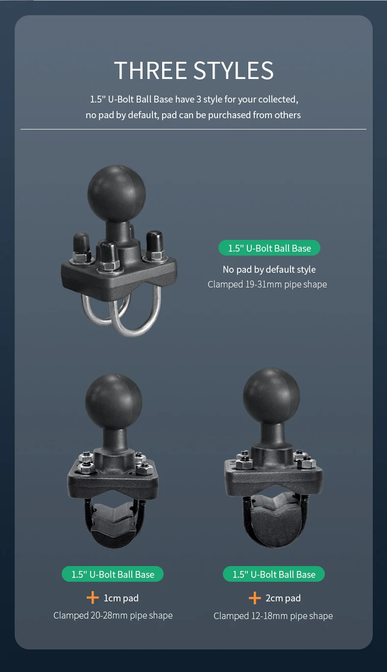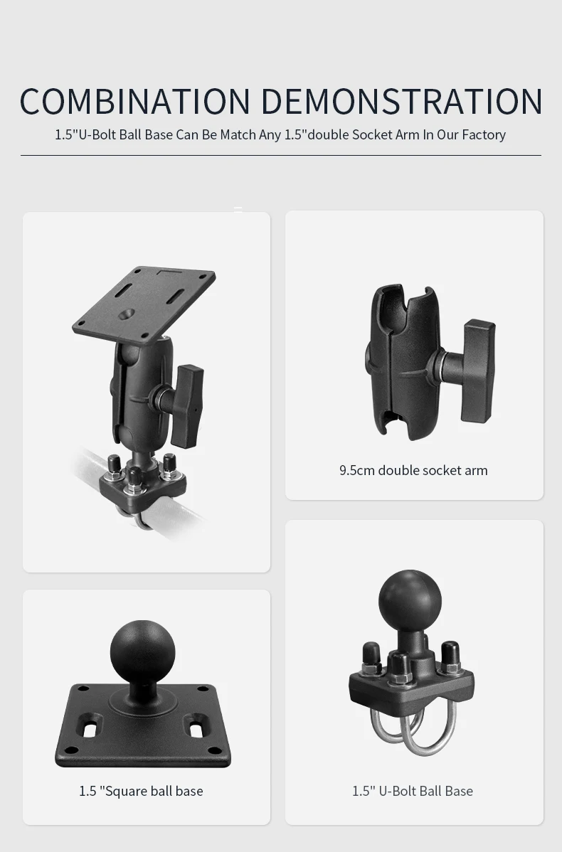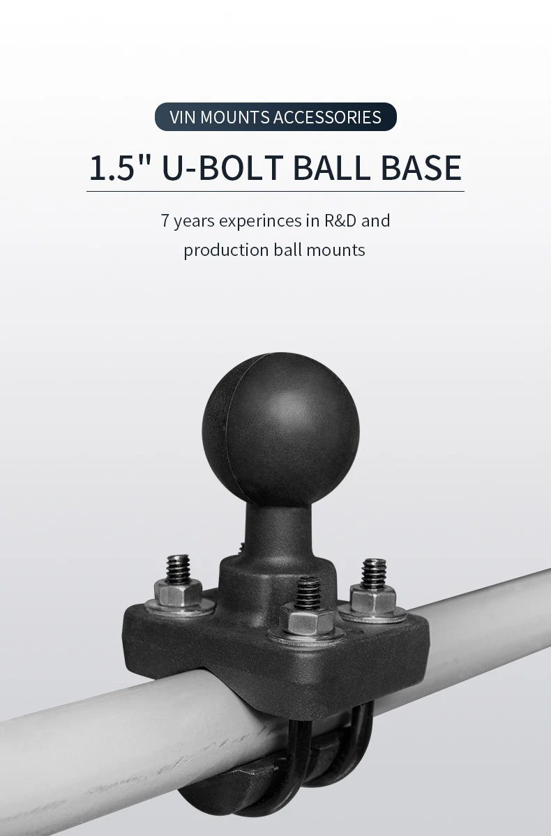 VINmounts Double U-Bolt Handlebar Rail Base with 1.5 inch Ball for mountingTablet/Motorcycle/Bike/forklift/Warehouse VIN-C-006