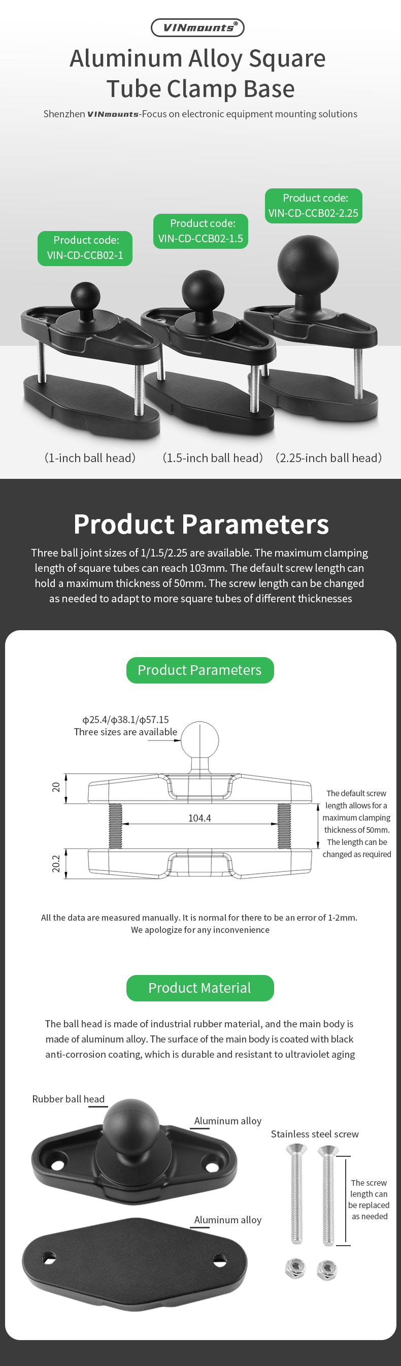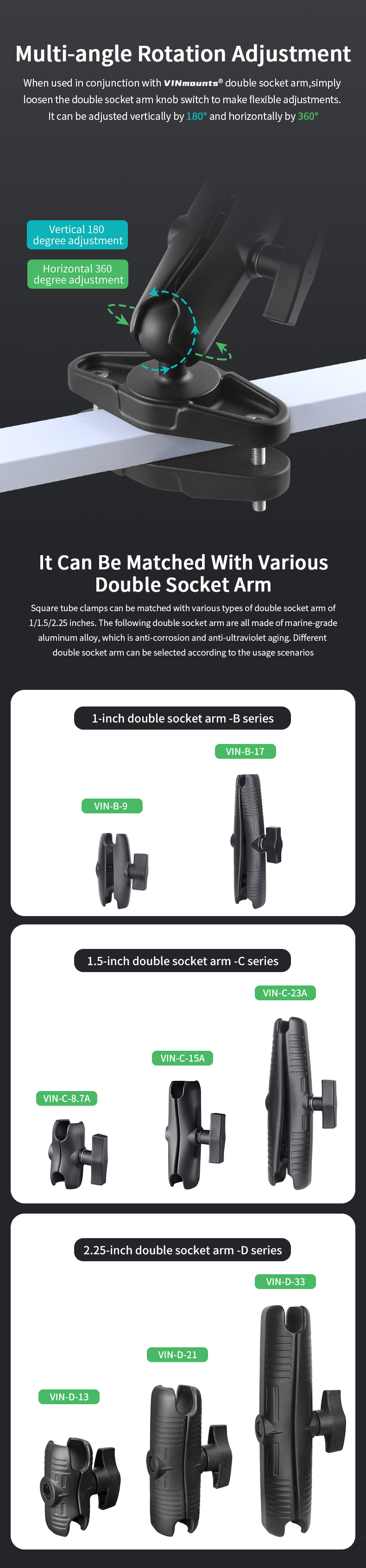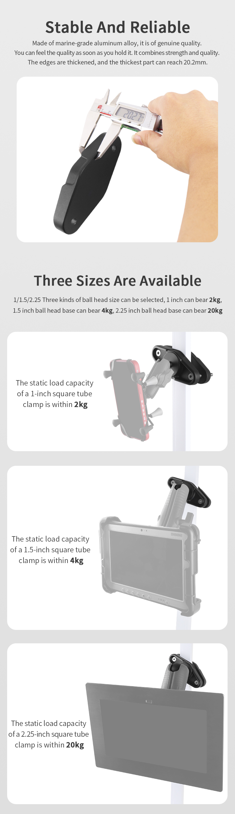 VINmounts Square Post Clamp Base with 1.5" ball for Posts up to 4" or 103mm Wide - C Size for Forklift VIN-CD-CCB02-1.5